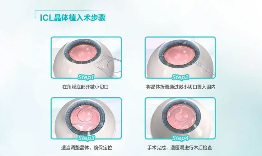 经过详细的术前检查后,如手术条件符合,ICL晶体植入术只需4步即可完成手术: