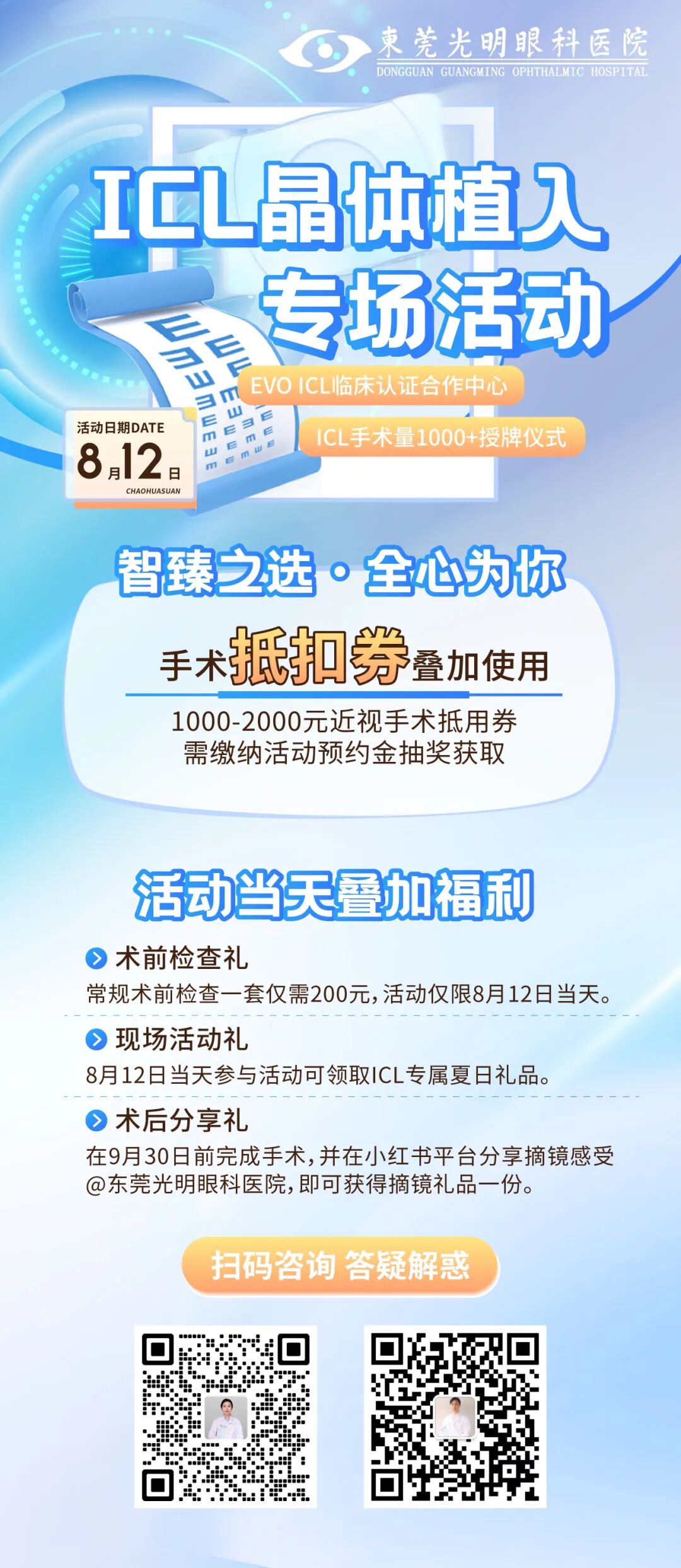 ICL晶体植入术手术切口小,不会改变眼球组织的结构和形状。可矫正[近视1800度内、散光600度内]。晶体可以随时取出,具有可逆性,视觉质量好等特点。